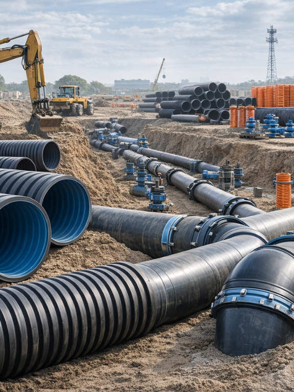 High-quality plastic pipes and fittings for infrastructure projects.